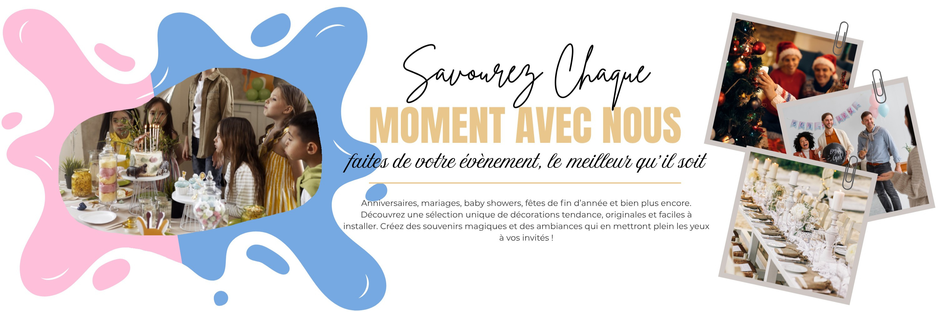 Découvrez notre univers de décoration festive pensé pour émerveiller les coeurs. Que ce soit pour un anniversaire, une baby shower ou une fête à thème, nos collections assorties vous aident à créer des moments uniques et inoubliables. Ballons, bougies, vaisselle, accessoires : tout pour une fête réussie et une déco qui fait sensation !
