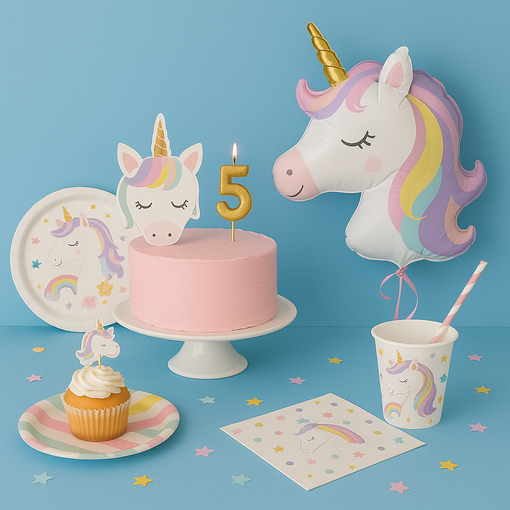 Transformez la fête en un véritable conte de fées avec notre collection spéciale Anniversaire Licorne ! De la vaisselle jetable aux ballons en passant par les bougies et les accessoires déco, chaque détail est pensé pour émerveiller les enfants et créer une ambiance magique. Invitez les arcs-en-ciel, les étoiles et les licornes à votre table pour un moment féerique que vos petits invités n’oublieront jamais !