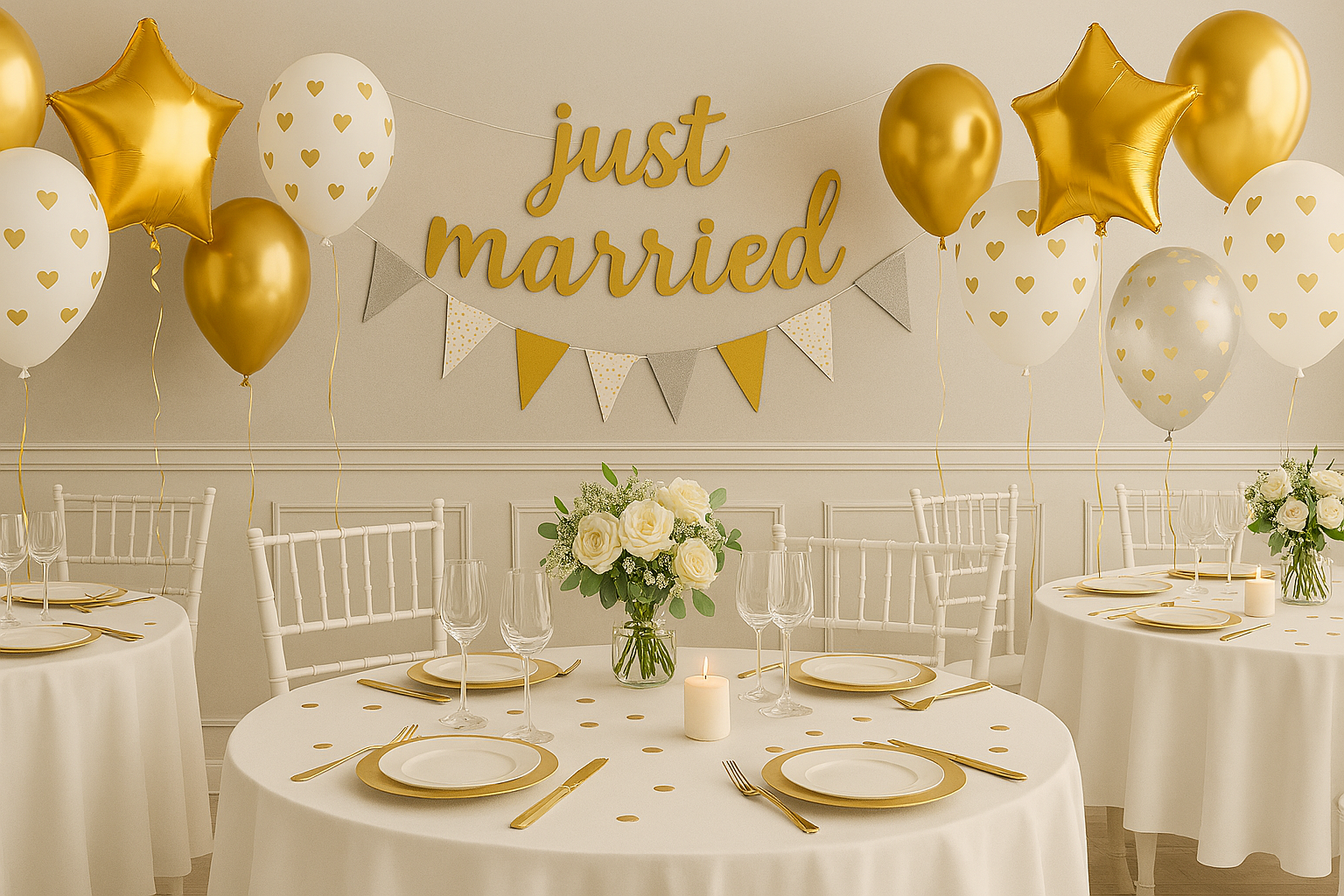 Créez une ambiance élégante et inoubliable pour le plus beau jour de votre vie. Découvrez notre sélection de décorations de mariage : vaisselle raffinée, guirlandes, ballons, bougies et accessoires pour sublimer votre réception. Des détails soignés pour un mariage à votre image, plein de charme et de magie.