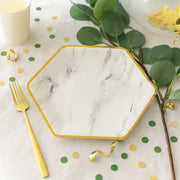 Laissez-vous séduire par le design marbré original qui apporte une ambiance naturelle et sophistiquée à vos repas festifs. Chaque assiette hexagonale avec sa bordure dorée est pensée pour créer un effet visuel élégant et contemporain. Ces assiettes résistantes sont idéales pour accueillir tous vos plats, rendant vos célébrations encore plus mémorables et stylées.