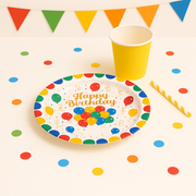 Ajoutez une touche festive à votre table avec ces assiettes jetables décorées de ballons colorés et du message "Happy Birthday". Idéales pour les anniversaires d’enfants ou d’adultes, elles apportent gaieté et praticité à votre événement. Une solution simple et élégante pour une fête sans stress et pleine de couleurs.
