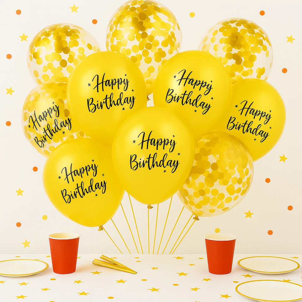 - Apportez une touche unique et festive à votre table avec nos Ballons Happy Birthday à Confettis Dorés.