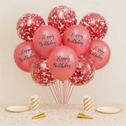 Ballons Happy Birthday à Confettis Rouges