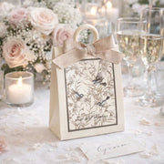 Cette boîte à dragées mariage à anneau en bois séduit par son allure douce et raffinée. Sa forme structurée met en valeur un délicat motif floral aux tons neutres, parfaitement adapté à une décoration élégante. L’anneau en bois apporte une touche authentique et chaleureuse, idéale pour un mariage romantique ou champêtre. Posée sur une table, elle devient un véritable élément décoratif tout en conservant sa fonction pratique et précieuse.