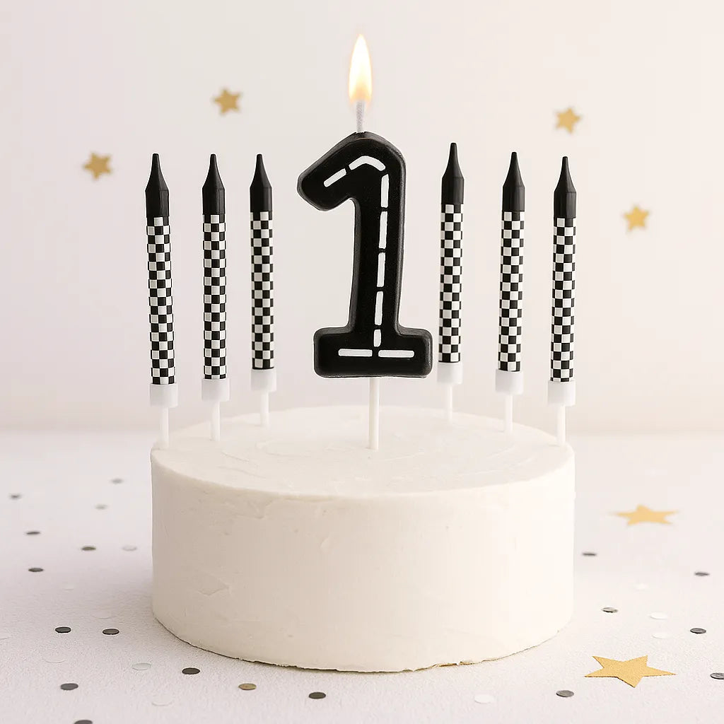 La bougie anniversaire thème course se pare de couleurs vives comme le rouge, le noir et le blanc, rappelant la vitesse et l’adrénaline des circuits automobiles. Elle apporte une touche festive et dynamique à votre gâteau, parfaite pour les fans de voitures et de courses.