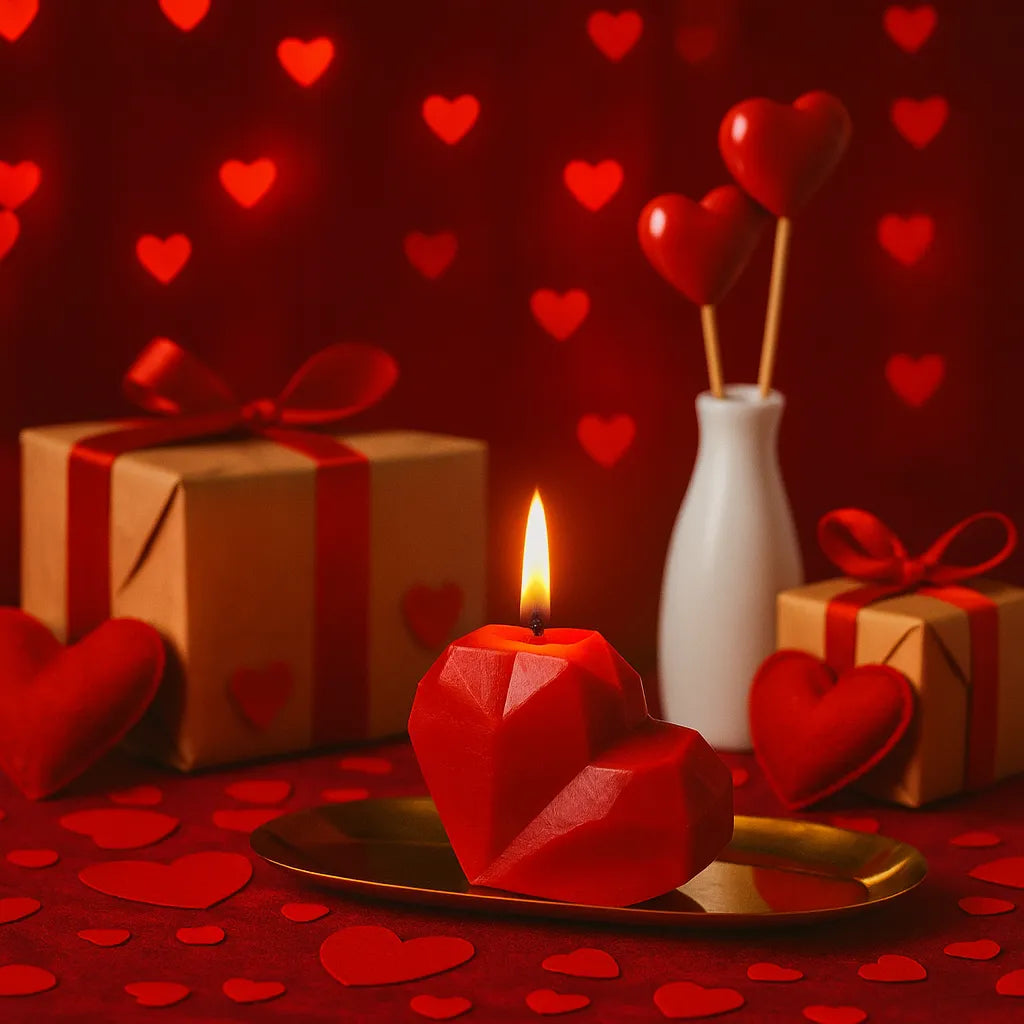 Mettez en lumière votre décoration avec cette bougie cœur rouge graphique