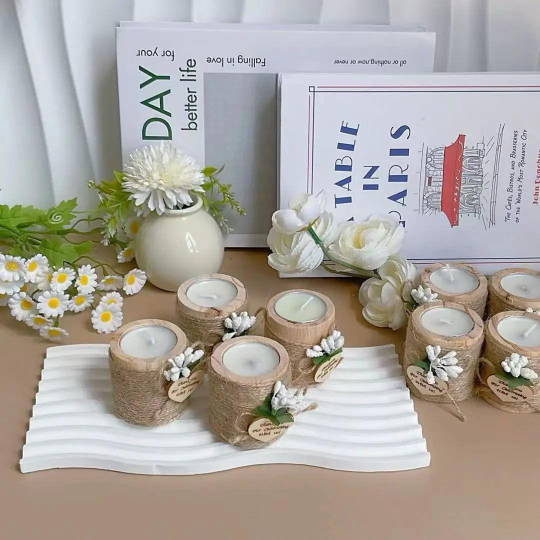 Idéale pour remercier vos invités, cette bougie incarne un geste simple mais chargé de sens. Son allure champêtre s’accorde parfaitement aux mariages bohèmes, rustiques ou naturels. Elle apporte une touche décorative discrète tout en conservant une vraie valeur sentimentale. Facile à intégrer dans le quotidien, elle devient un rappel lumineux de votre célébration, transformant un simple objet en souvenir précieux et durable.