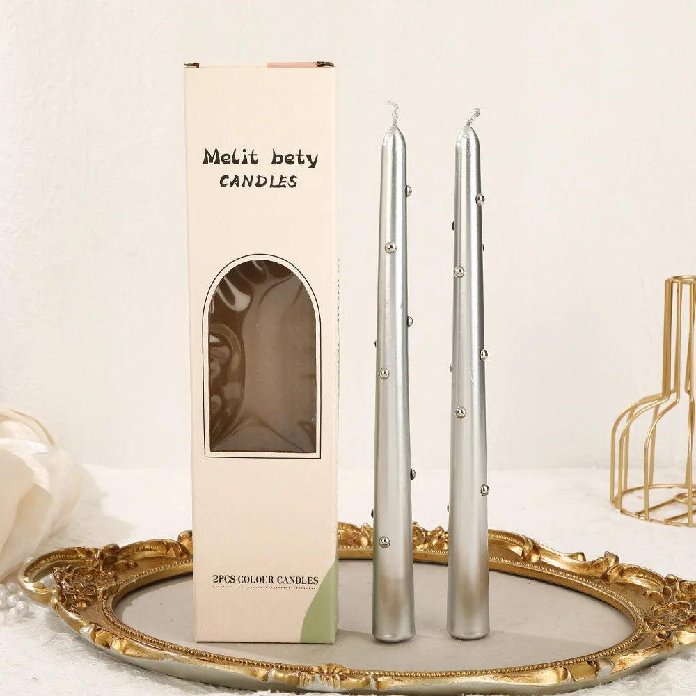 Ces bougies de mariage argentées à perles sont conçues pour offrir à vos invités un souvenir aussi raffiné que symbolique. Leur finition brillante capte subtilement la lumière et apporte une atmosphère chic à votre réception. Placées sur les tables ou offertes en cadeau, elles expriment votre attention avec délicatesse. Elles s’intègrent parfaitement aux mariages élégants et modernes, laissant à chacun un souvenir lumineux et précieux de votre journée.