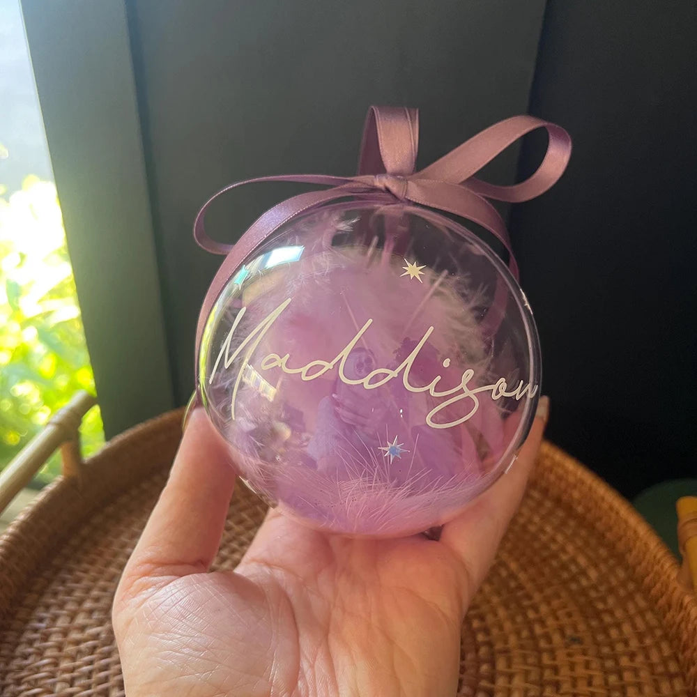 Chaque boule transparente renferme des plumes violettes délicates qui apportent élégance et originalité à votre décoration. Son style aérien et raffiné illumine chaque branche, offrant un rendu magique et coloré. Que ce soit pour décorer votre sapin ou pour offrir un cadeau unique, cette boule personnalisable transforme chaque moment festif en souvenir mémorable et enchanteur.