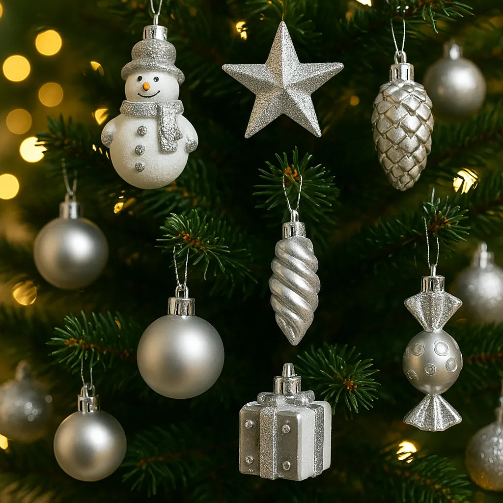 - Des Boules de Sapin Argentées avec un design original, pour un Noël plus que réussi.