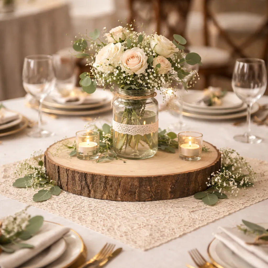 Avec ce centre de table mariage champêtre, chaque élément naturel prend vie sur votre table. Ses détails floraux et ses matériaux authentiques créent une ambiance douce et détendue, tout en insufflant une énergie apaisante à votre décor. Adapté aux mariages rustiques ou en extérieur, il met en valeur la beauté de la nature tout en ajoutant une touche de raffinement. Il devient un élément essentiel pour une décoration raffinée et inspirée de la campagne.
