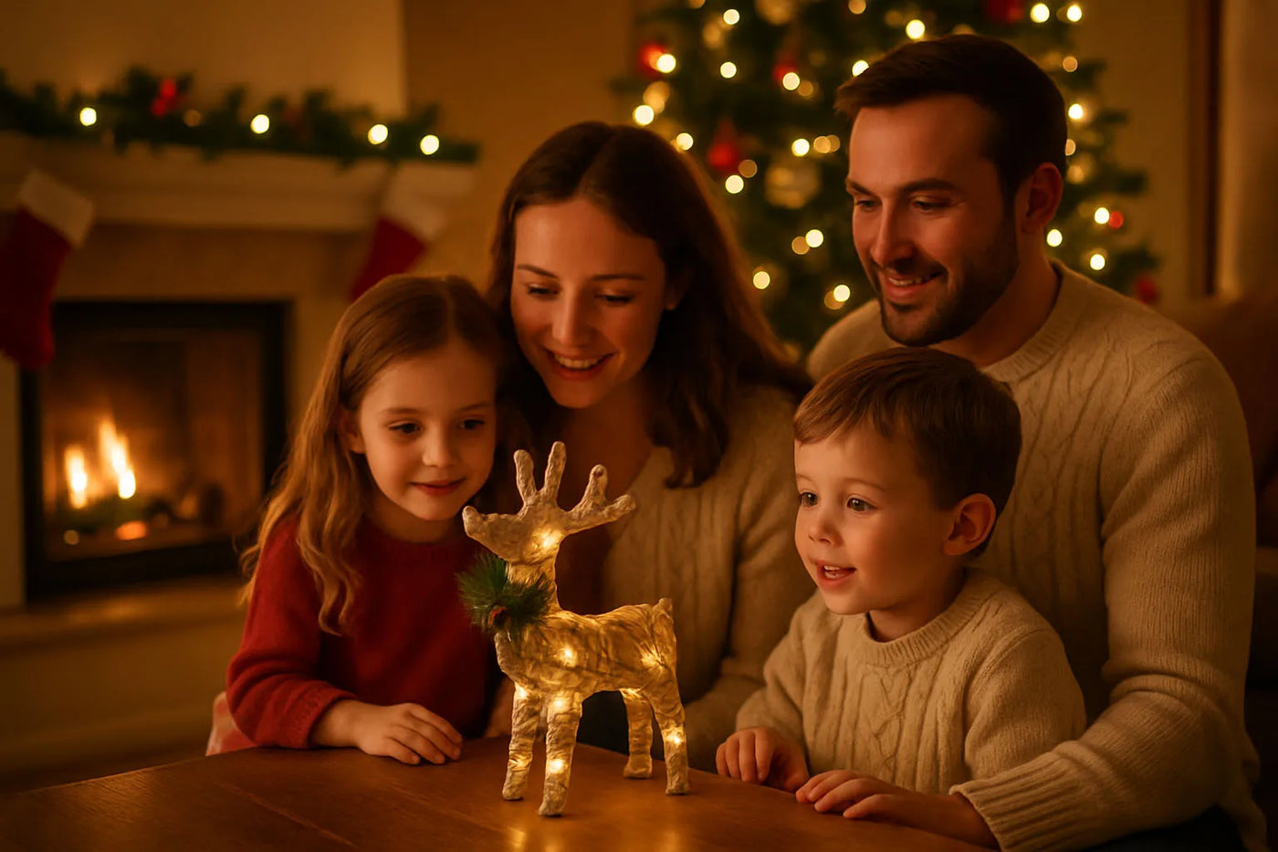 La finesse de son tressage et les détails de sa couronne décorative confèrent à ce renne un charme incomparable. Ses LED chaud créent une lueur réconfortante qui illumine délicatement vos soirées de décembre. Solide, pratique et facile à placer, il devient rapidement un élément incontournable de vos décorations saisonnières. Un accessoire idéal pour enrichir vos fêtes d’une touche rustique élégante.