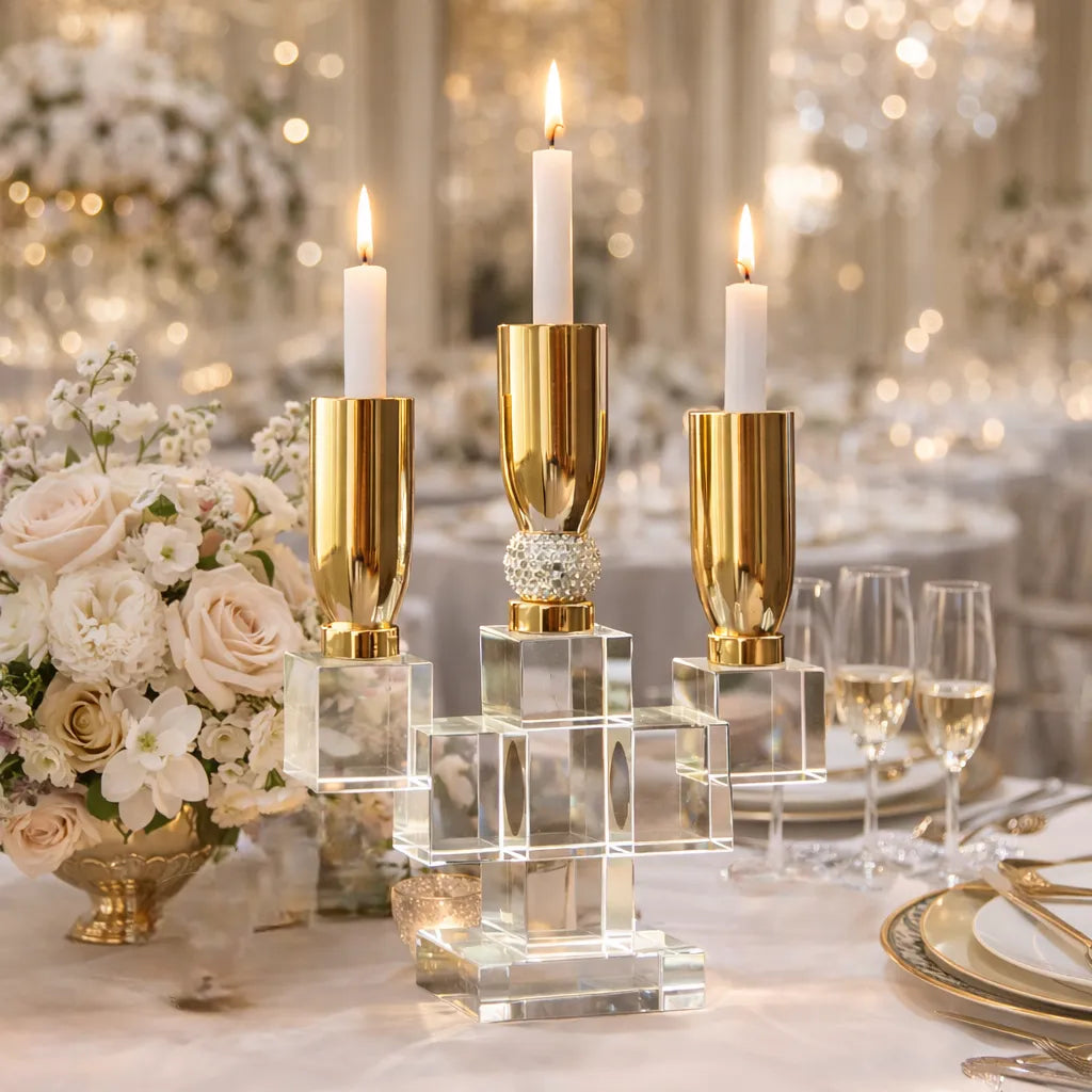Ce bougeoir en verre ambré apporte une touche de chaleur et d’élégance à votre mariage. Ce chandelier innovant fusionne formes géométriques et lignes épurées pour créer une pièce maîtresse dans n'importe quel intérieur. Son design audacieux s'adapte facilement à différents styles modernes, apportant une touche d'art et de sophistication. Conçu pour équilibrer fonctionnalité et esthétique, il diffuse une lumière douce, créant ainsi une atmosphère chaleureuse et élégante, tout en devenant un élément central de votre décoration.
