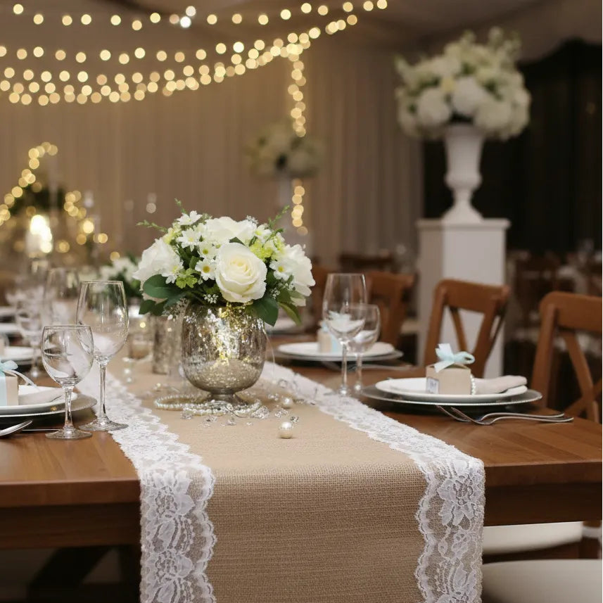 Chemin de Table Mariage en Jute à Dentelles - 1 Pièce
