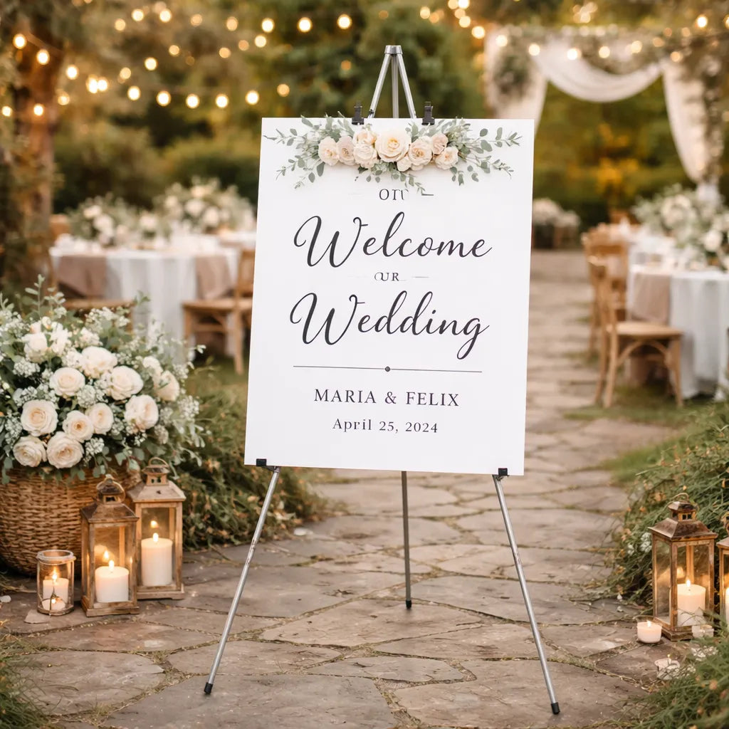 Mettez en valeur vos éléments de signalétique grâce à notre collection de chevalets mariage, conçue pour présenter élégamment panneaux, menus ou plans de table. Associez-les à notre décoration de salle mariage afin de structurer votre espace et créer une ambiance harmonieuse, soignée et parfaitement organisée.