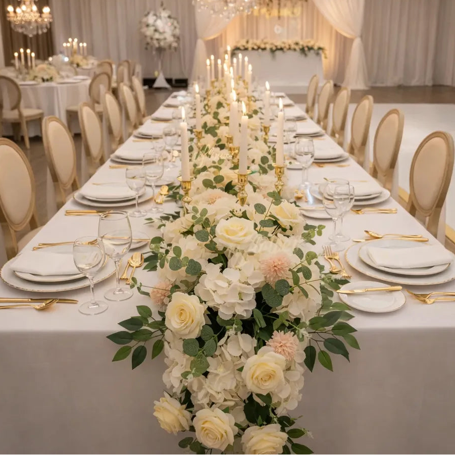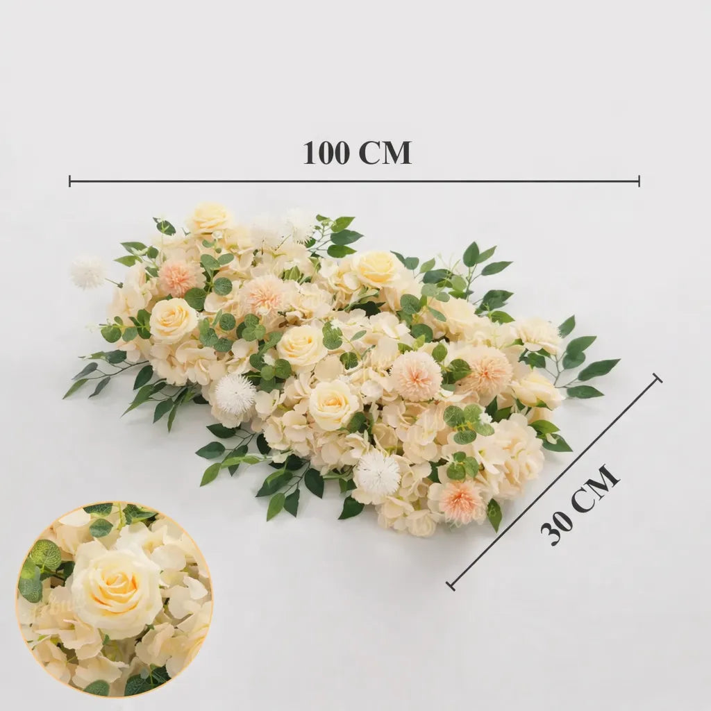 Chaque élément de cette composition florale centre de table a été assemblé avec soin afin d’obtenir un rendu soigné et réaliste. Les finitions précises mettent en valeur les volumes et la texture des fleurs, offrant une impression de fraîcheur durable. Le design a été conçu pour rester stable et esthétique tout au long de l’événement. Ce centre de table devient ainsi un véritable élément décoratif, capable de transformer l’ambiance de la table sans effort.