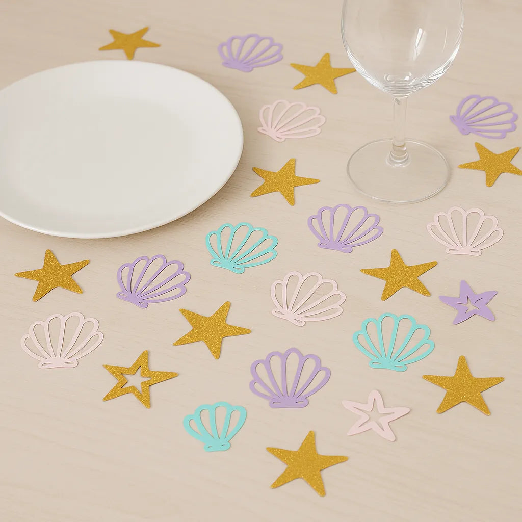 Plongez dans un monde magique avec ces Confettis Sirène aux couleurs pastel et aux formes marines scintillantes. Parfaits pour une table d'anniversaire, ces petits éclats de fête apportent une ambiance enchantée qui fera rêver les petits comme les grands. Une décoration idéale pour une fête inoubliable.