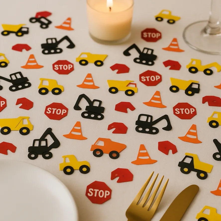 Transformez votre fête d’anniversaire en véritable zone de travaux avec ces confettis sur le thème de la construction. Camions, cônes, panneaux et casques animent votre table avec originalité. Parfaits pour les fans de chantiers et de gros engins, petits et grands s’amuseront dans une ambiance unique et ludique.