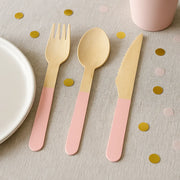 Couverts Jetables en Bois Rose Pastel - 1