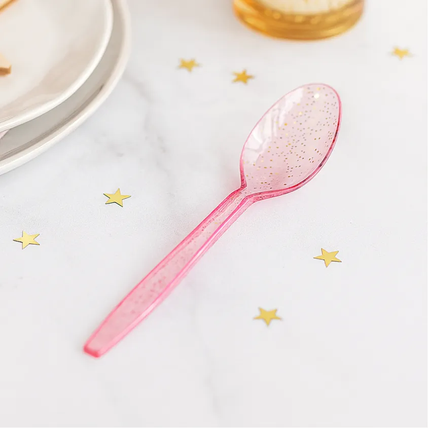 Cuillères Jetables Roses Pailletées – Élégance et Brillance pour Vos Événements