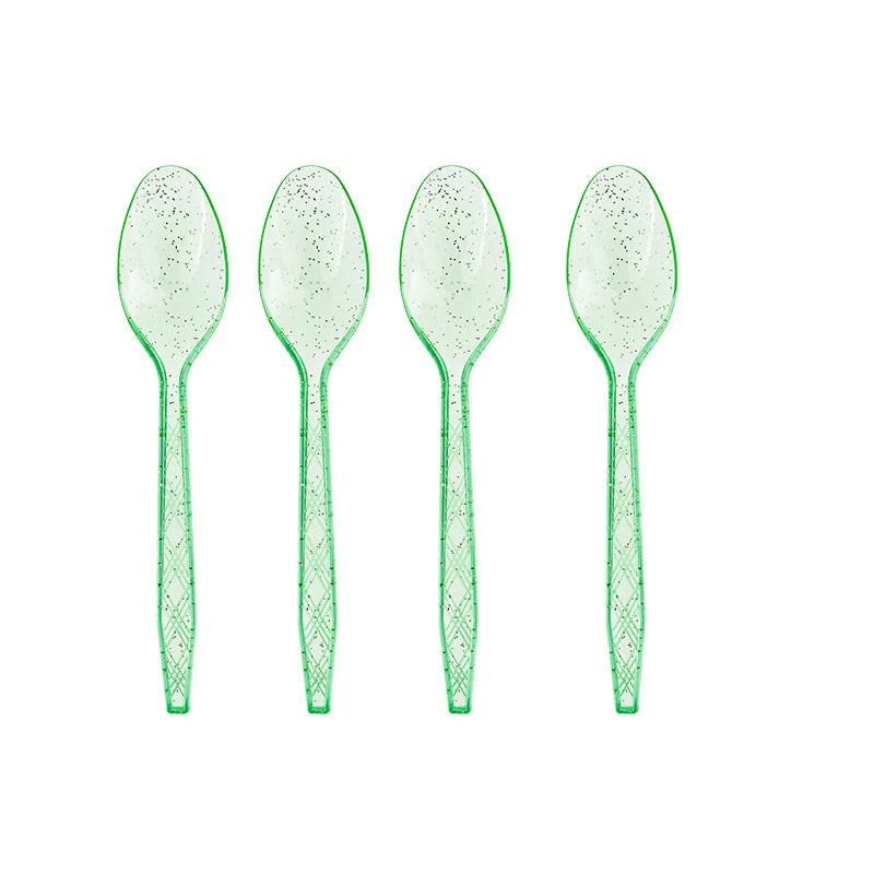 Cuillères Jetables Vertes Pailletées — Élégance festive et praticité assurée