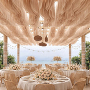 Le drapé de plafond ondulé nude est l'option parfaite pour ceux qui recherchent une décoration épurée et sophistiquée. Sa texture légère et fluide crée un effet visuel moderne et aéré, idéal pour les mariages et autres événements élégants. Facile à installer grâce à ses poches pour tringle, il s’intègre parfaitement dans n’importe quel espace tout en apportant de l'élégance à chaque coin. Ce drapé est durable et réutilisable, garantissant un décor intemporel.