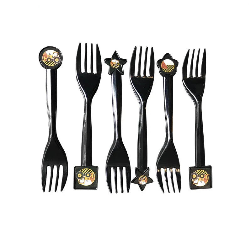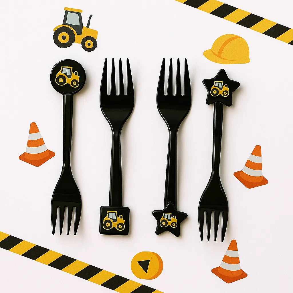 - Parfaites pour les anniversaires de petits bâtisseurs, ces fourchettes sur le thème du chantier ajoutent une touche ludique à votre table.