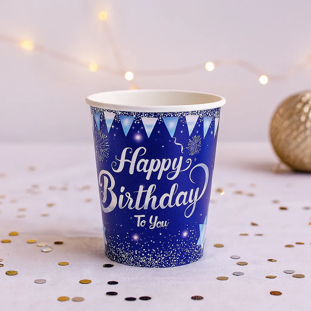 - Gobelets Jetables bleu à thème anniversaire