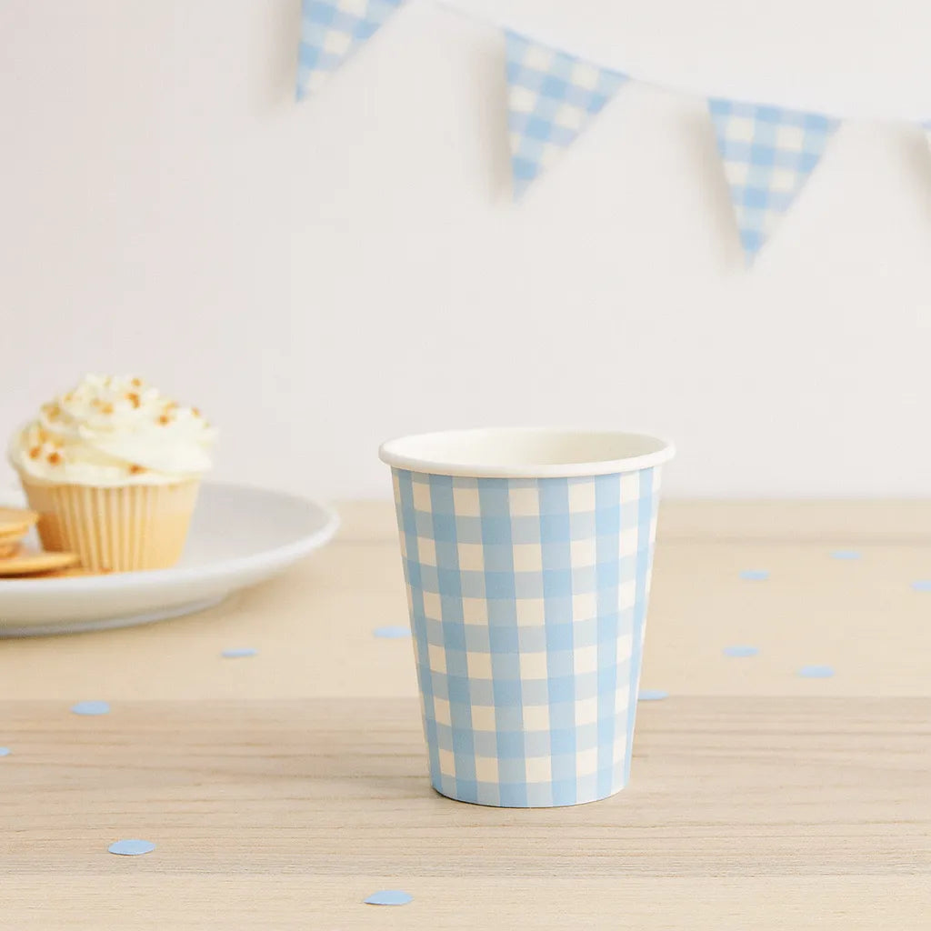- Un Gobelet Jetable Carreaux Bleu avec un design original, pour un anniversaire plus que réussi.