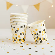 Le motif étoilé créé un effet visuel festif et élégant. Ces gobelets sont parfaits pour les boissons froides et chaudes. Leur conception jetable vous libère de la vaisselle, tout en apportant une touche décorative à toutes vos réceptions.