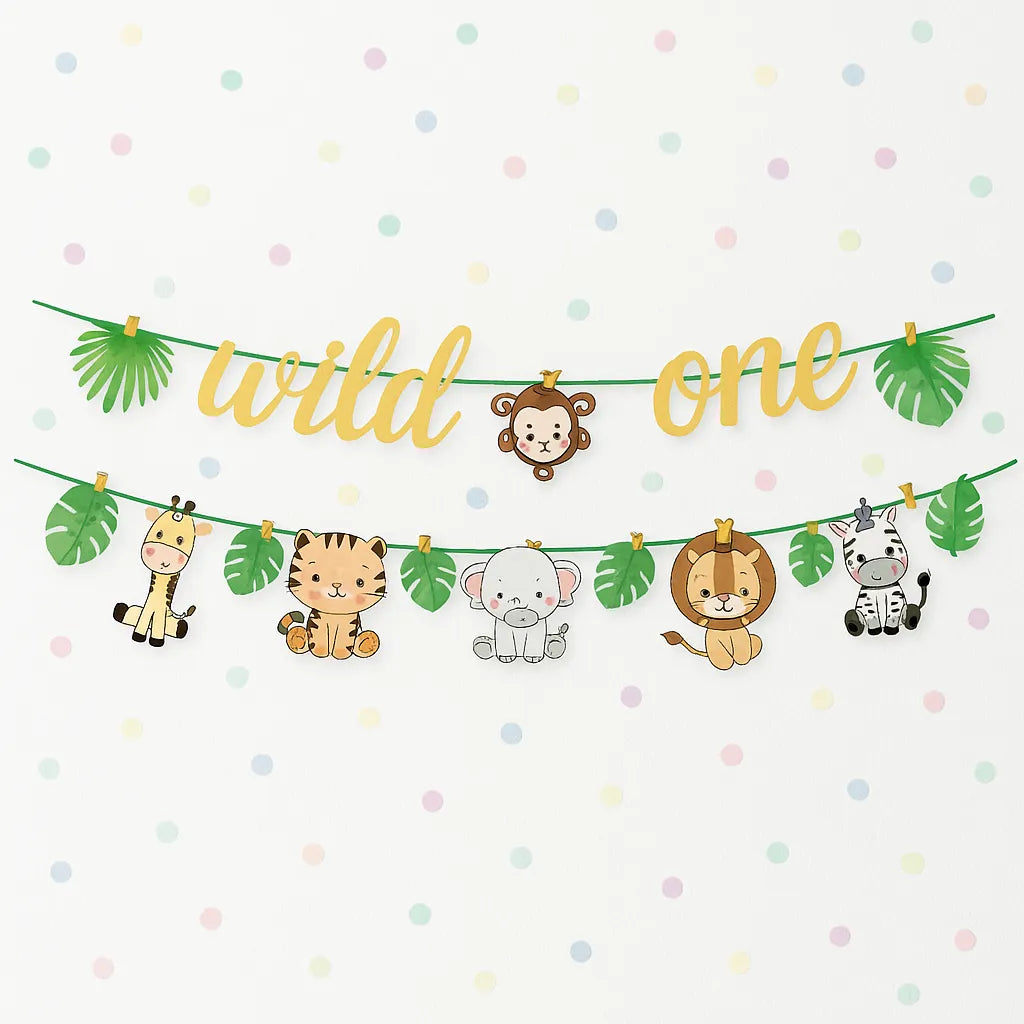 Ornée d’animaux mignons, de feuilles tropicales et de couleurs vives, cette guirlande est conçue pour émerveiller les petits comme les grands. Facile à suspendre, elle s’accorde parfaitement avec un thème safari ou jungle, et rendra chaque photo de ce moment précieux encore plus magique.