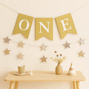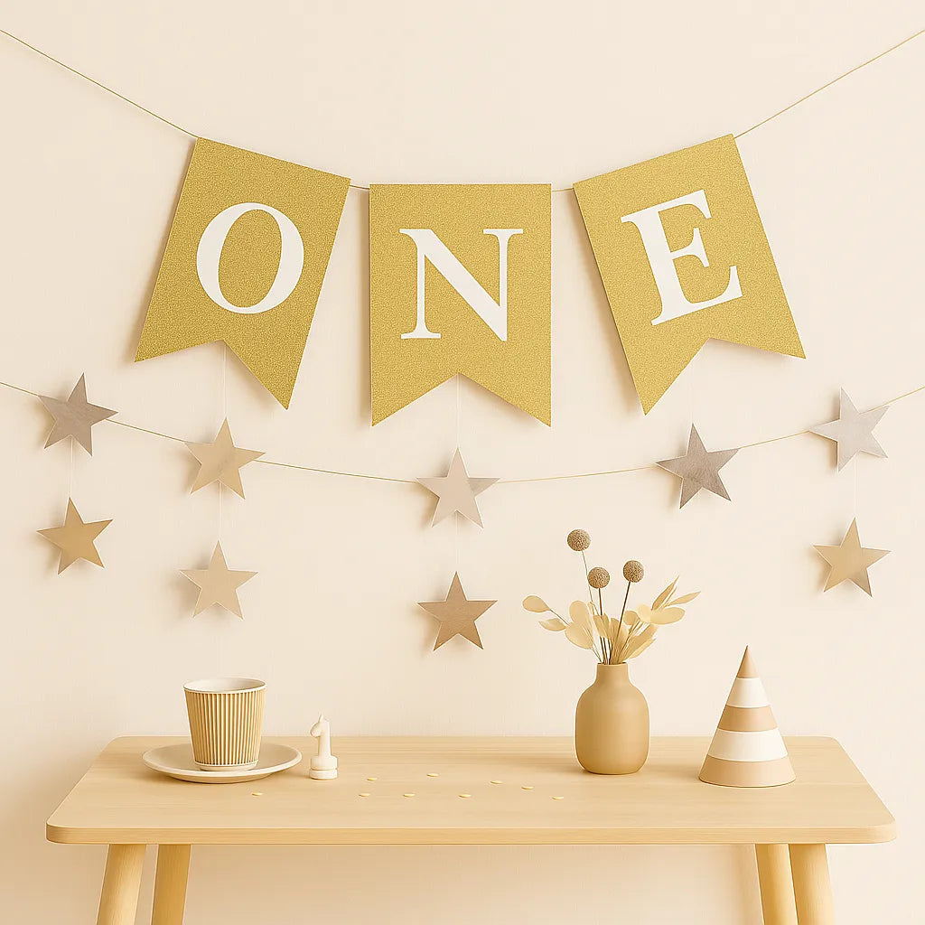 Apportez une touche d'élégance à vos événements grâce à notre Guirlande Premier Anniversaire Dorée. Matière : Toile de Jute. Couleur...