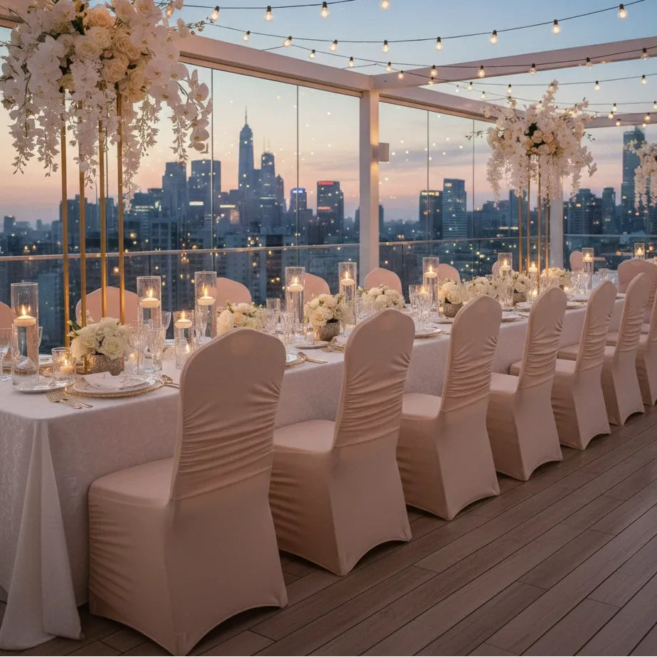 Habillez votre salle avec notre collection de housses de chaise mariage, conçue pour transformer instantanément l’espace de réception. Associez-les à nos nappes, chemins de table et centres de table pour créer une décoration de salle mariage parfaitement coordonnée, élégante et immersive.
