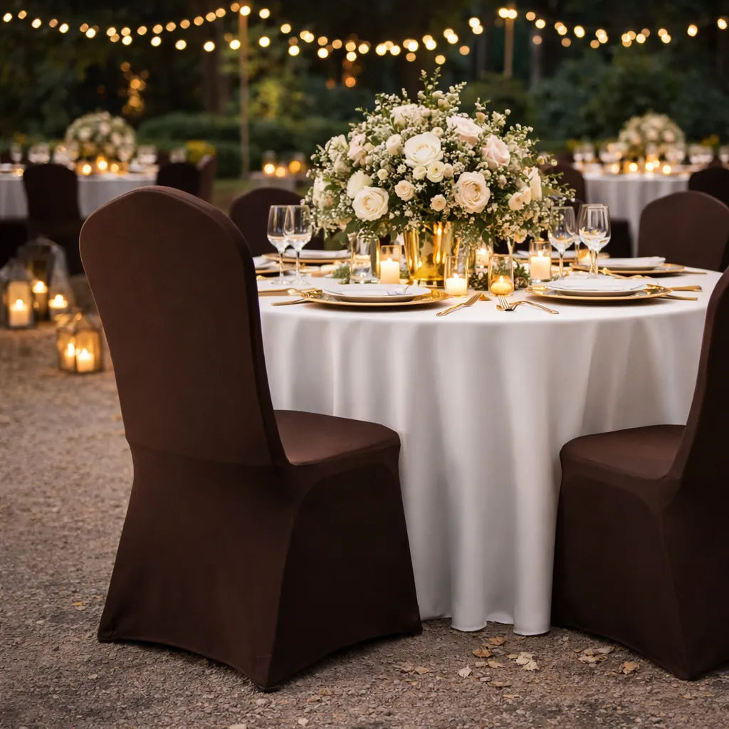 Apportez du caractère à votre réception grâce à cette housse pour chaise pliante marron, idéale pour une décoration élégante et authentique. Son tissu extensible composé de polyester et d’élasthanne épouse précisément les formes de la chaise pour un rendu structuré et harmonieux. Résistante aux éclaboussures et aux faux plis, elle conserve une apparence soignée pendant toute la durée de l’événement. Un choix parfait pour sublimer une ambiance chic et conviviale.