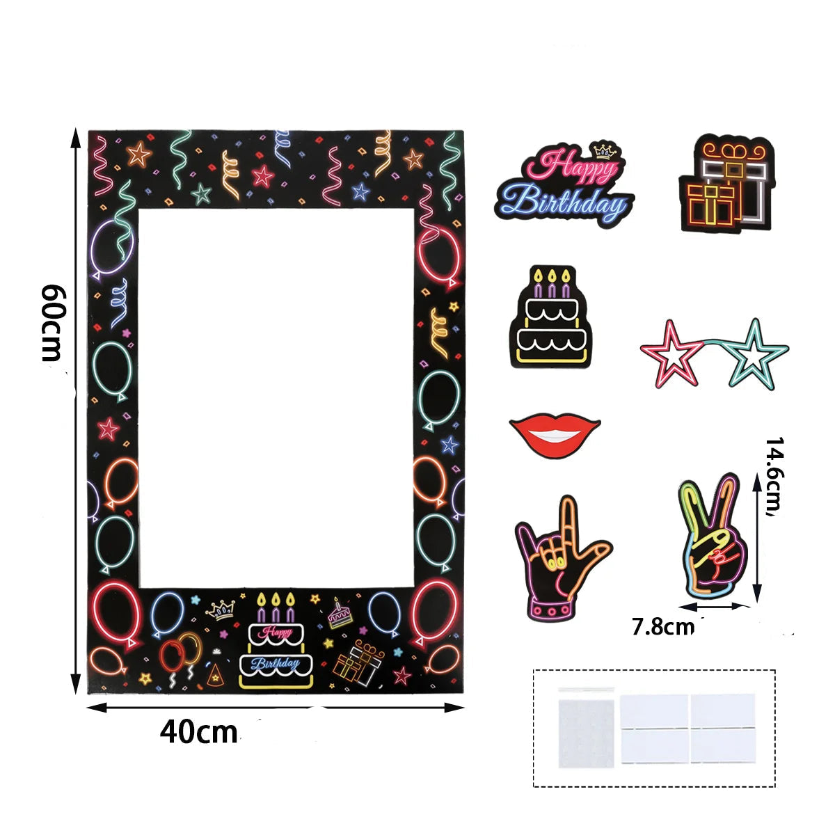 - Le set est compose de : un cadre et sept accessoires fluorescents