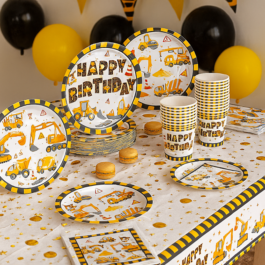 Ce kit comprend tout le nécessaire pour une table festive : assiettes, gobelets et serviettes de qualité, au design 100 % chantier. Fabriqués en papier solide, les éléments résistent à la chaleur et aux liquides sans se déformer. Léger et facile à ranger, il est idéal pour les fêtes en extérieur ou à la maison. Offrez-vous une vaisselle jetable robuste et stylée qui plaît autant aux enfants qu’aux parents.