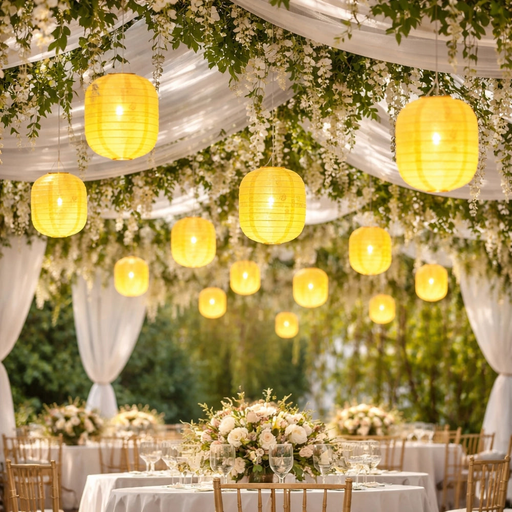 Créez une ambiance douce et aérienne avec notre collection de lampions mariage, parfaite pour habiller plafonds, extérieurs ou espaces de réception avec légèreté. Associez-les à notre décoration de salle mariage afin de composer une scénographie lumineuse et harmonieuse, en accord avec le thème de votre célébration.
