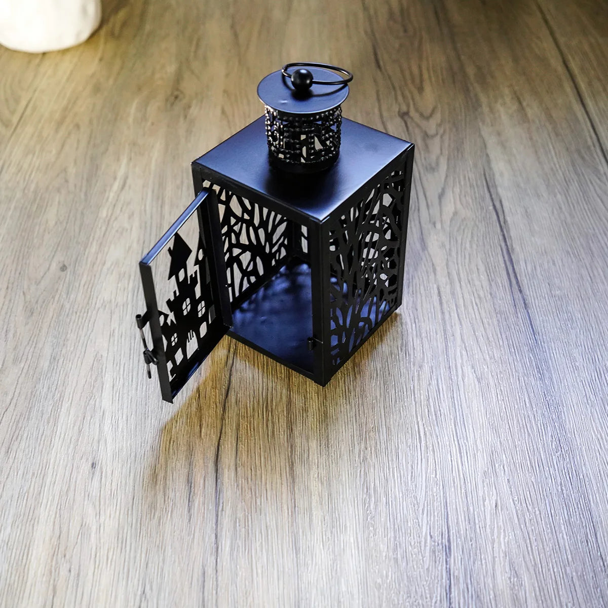 - Le design en fer découpé de cette lanterne Halloween crée un jeu d’ombres et de lumières captivant.