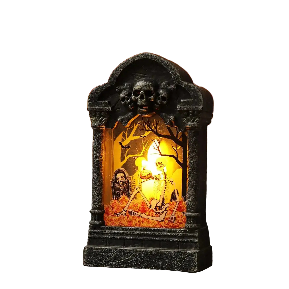 - Sublimez votre décoration avec la Lanterne Originale Pierre Tombale, une pièce lumineuse au design gothique réaliste qui crée instantanément une ambiance mystérieuse et captivante.