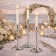 Avec leurs lignes nettes et leur finition argentée impeccable, ces bougeoirs sont un atout décoratif incontournable pour toute réception. Leur forme simple mais élégante permet de mettre en valeur la flamme tout en apportant une profondeur visuelle à la table. Faciles à intégrer dans n’importe quel style de mariage, ces bougeoirs deviennent une base lumineuse et raffinée pour compléter votre décoration. Un choix parfait pour marquer chaque moment avec sophistication et éclat.