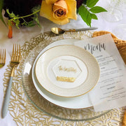 Offrez à vos invités une expérience soignée dès leur arrivée avec ce marque-place en acrylique de haute qualité. Sa forme hexagonale apporte du caractère, tandis que sa finition lisse reflète élégamment la lumière. Facile à personnaliser, il devient un véritable élément décoratif et un joli souvenir à conserver. Idéal pour un mariage, il allie esthétique, praticité et durabilité pour une table qui marque les esprits.