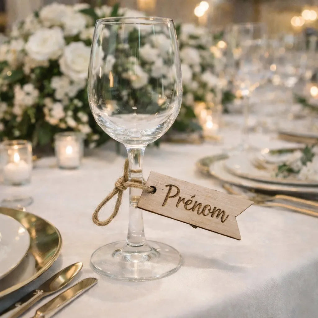 Apportez une touche chaleureuse et authentique à votre événement grâce à ce marque-place personnalisé en bois. Gravé avec soin au prénom de vos invités, il sublime instantanément votre décoration de table. Vous choisissez le style d’écriture et le rendu pour créer une ambiance qui vous ressemble. Solide, naturel et réutilisable, il devient aussi un joli souvenir à emporter. Offrez à vos convives une attention délicate qui fera toute la différence.