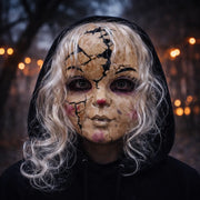 Ce masque poupée Halloween affiche un design saisissant mêlant innocence perturbée et horreur visuelle. Les fissures soigneusement dessinées, les traits délicats et les cheveux intégrés créent une esthétique dérangeante qui attire immédiatement l’attention. Son aspect craquelé, travaillé avec précision, renforce l’illusion d’une poupée abandonnée revenue hanter la nuit. Idéal pour impressionner lors d’Halloween, il transforme n’importe quel déguisement en véritable scène de frisson.