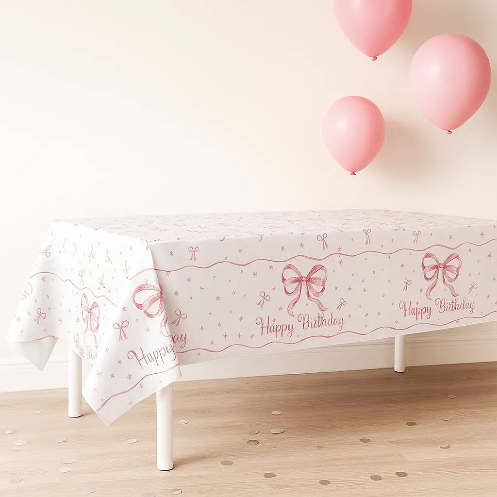 Nappe Anniversaire Élégante avec Nœuds – Pour une Table de Fête Inoubliable.