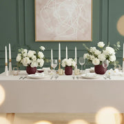 Apportez une touche de raffinement à votre décoration de mariage grâce à cette nappe ivoire au charme discret et lumineux. Sa teinte douce met en valeur votre vaisselle et vos centres de table tout en créant une atmosphère chaleureuse et harmonieuse. Conçue pour habiller vos tables avec élégance, elle transforme instantanément votre salle de réception en un lieu accueillant et soigné, idéal pour célébrer les moments les plus précieux entouré de vos invités.