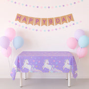 Offrez à votre enfant un moment inoubliable avec cette Nappe Licorne Violette, parfaite pour les anniversaires à thème, baby showers ou goûters enchantés. Son design délicat avec des licornes et un arc-en-ciel sur fond violet crée une ambiance douce, joyeuse et magique. Parfaite pour faire briller les yeux des petites rêveuses !