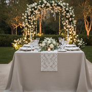 Structurez votre réception avec notre collection de nappes de mariage, pensée pour s’adapter à chaque thème et configuration de table. Associez-les à nos chemins de table, sets décoratifs et différents accessoires disponibles dans notre gamme de décorations de table mariage pour créer une harmonie visuelle cohérente et élégante sur l’ensemble de votre événement.
