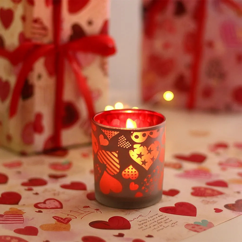 - Créez une ambiance chaleureuse et romantique avec ce photophore à motifs cœurs, parfait pour illuminer vos soirées avec douceur et élégance.