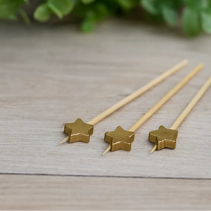 Ces Pics Etoile Gold subliment instantanément vos desserts, apéritifs ou cocktails. Leur finition dorée reflète la lumière et attire le regard, ajoutant une note chic à toutes vos présentations. Idéal pour les fêtes, anniversaires ou mariages, chaque détail devient magique avec ces accessoires scintillants.