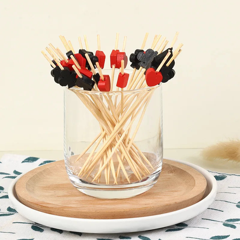 Les pics cocktail Poker se distinguent par leur design inspiré du célèbre jeu de cartes. Leurs symboles variés (pique, cœur, trèfle, carreau) apportent une touche amusante et thématique à vos apéritifs. Parfaits pour les soirées poker, anniversaires ou événements entre amis, ils transforment vos buffets en moments festifs et conviviaux.